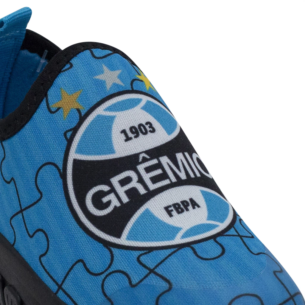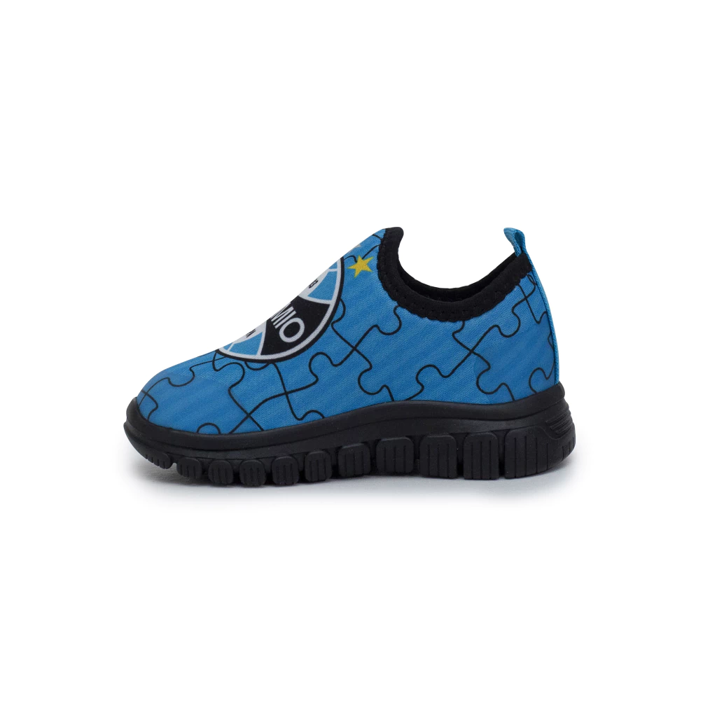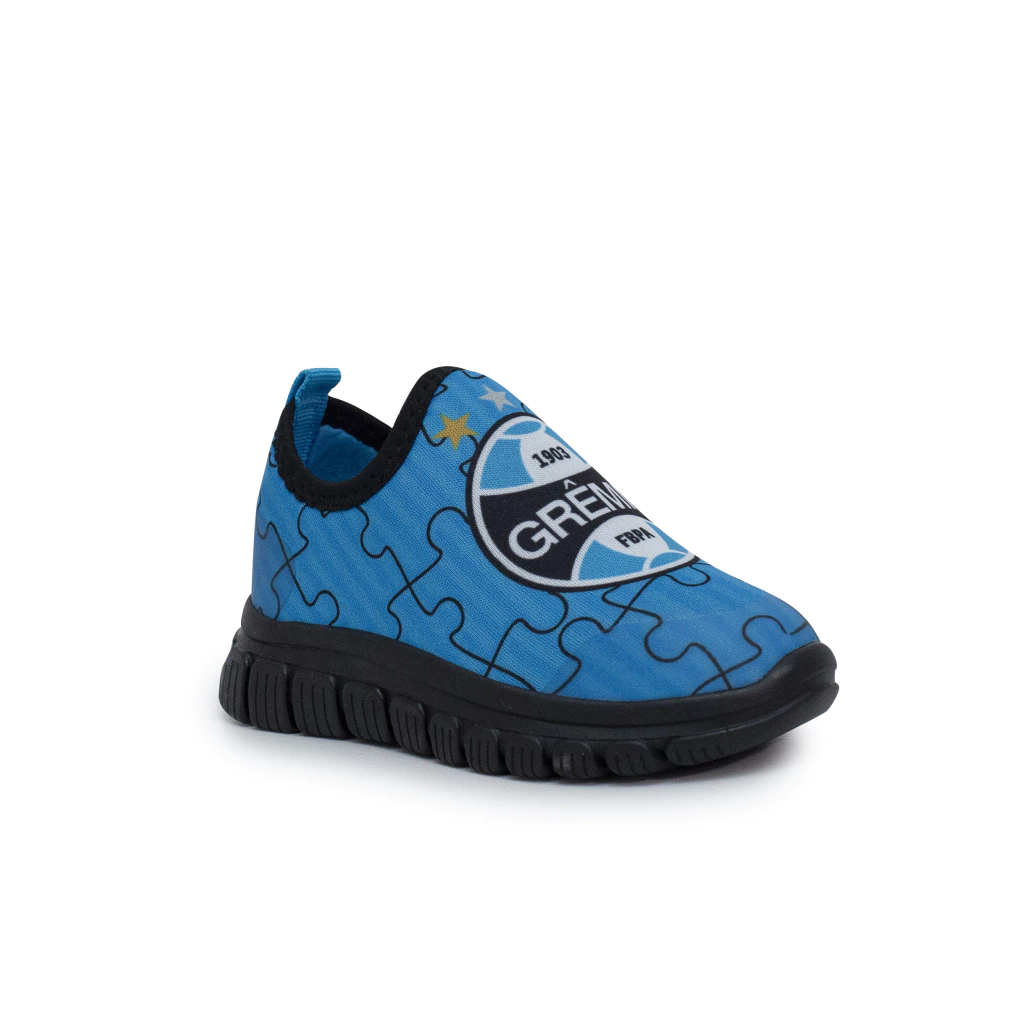 Com design slip-on (calce fácil) e o escudo oficial do Grêmio no cabedal, é ideal para acompanhar a criançada no dia a dia, nas brincadeiras e nos dias de jogo.